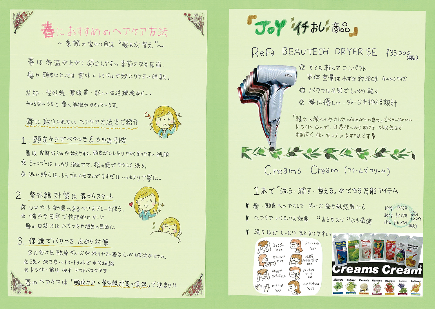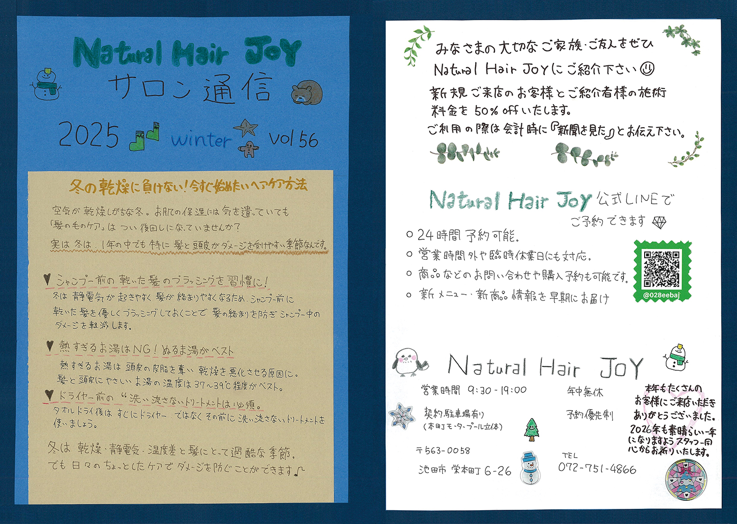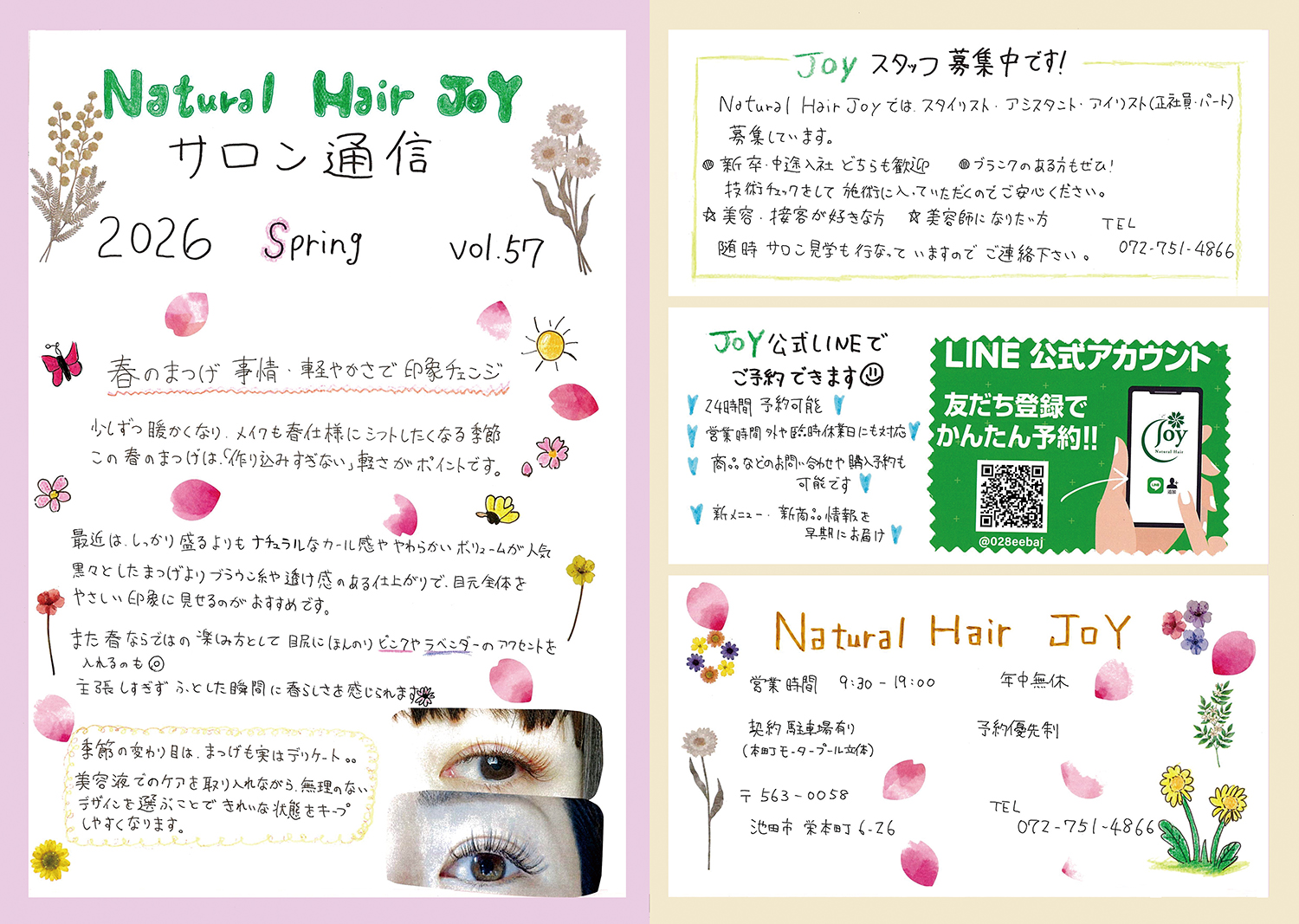 スタッフ手作りの新聞でサロンの最新情報をお届けします!ぜひご覧ください!(年4回発行)